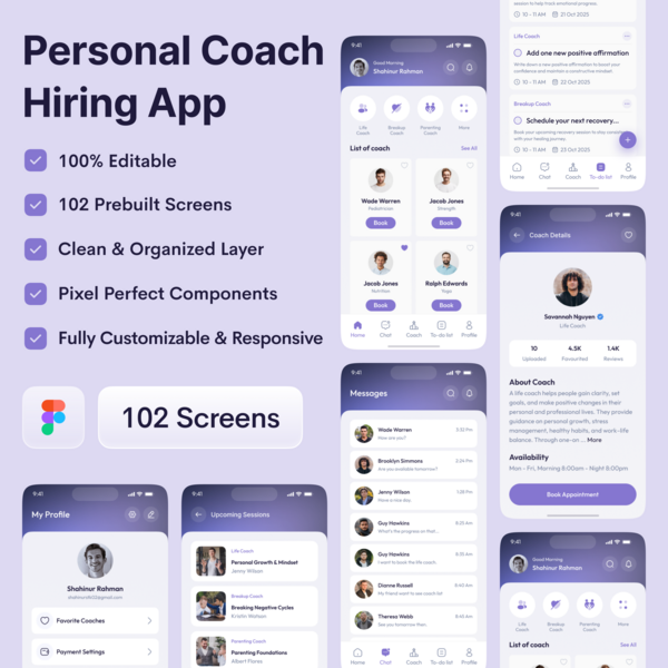 CoachHub - Personal Coach Hiring Mobile App Ui Kit (User Part)