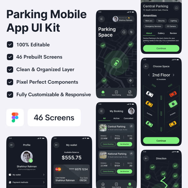 Parknur - Car Parking Mobile App UI Kit