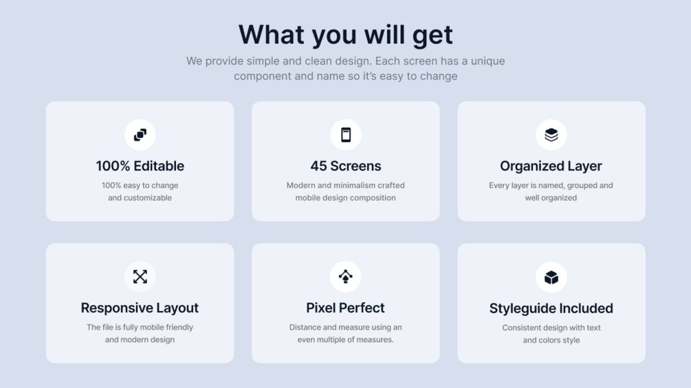 Gronur support for iOS (design system included) and 45 screens which are 100% editable & customizable. Designs are available in Figma. In addition, the design is also equipped with a version of Light Theme.